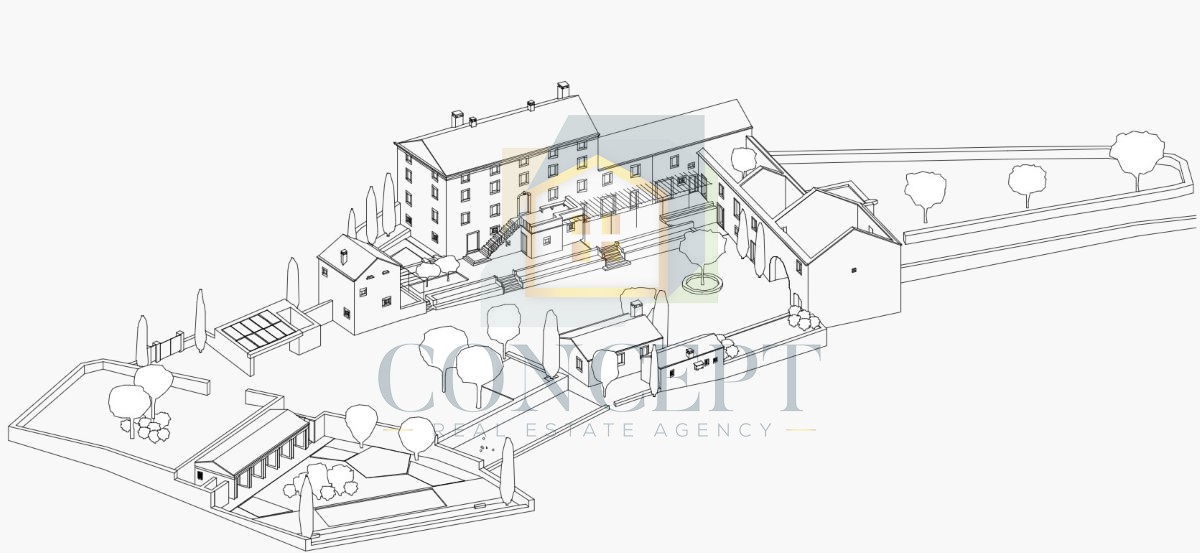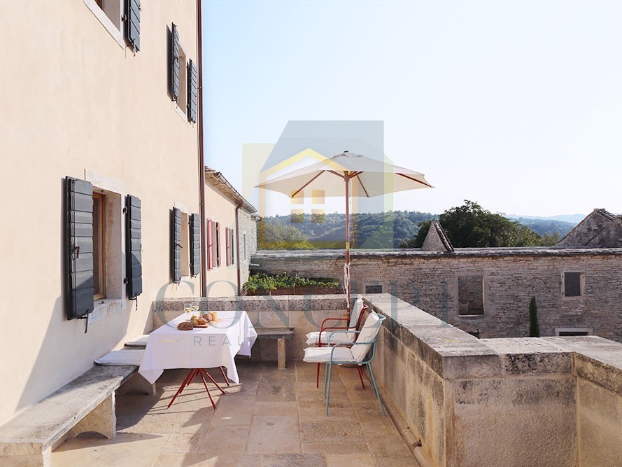 Na prodej je historický benátský majetek na klidném místě blízko Buje, který byl v průběhu staletí rozšiřován a obnovován, a svůj současný vzhled získal v roce 1891. Majetek spojuje historický charakter a moderní pohodlí, s celkovou rozlohou 3 600 m² pozemku a dalších 12 000 m² pronajaté zemědělské půdy s loukami a ovocnými stromy, které poskytují klid, přírodní prostředí a hojnost sezónního ovoce.