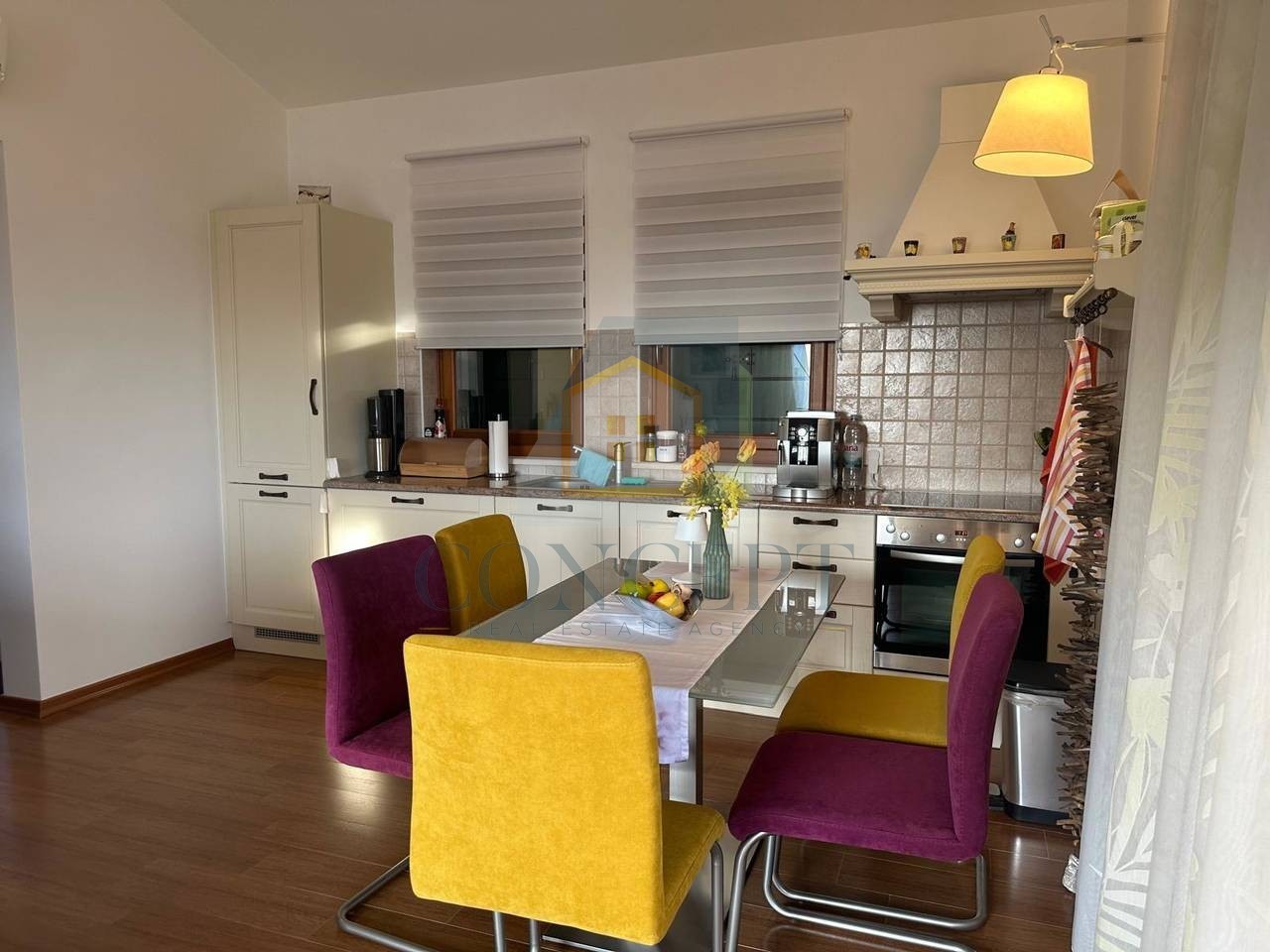 V rezidenční části, obklopené vilami a s výhledem na moře, se prodává byt o rozloze 113 m². Vzdálenost od moře činí 1 km. Lokace je vhodná i pro život díky blízkosti všech potřebných služeb.