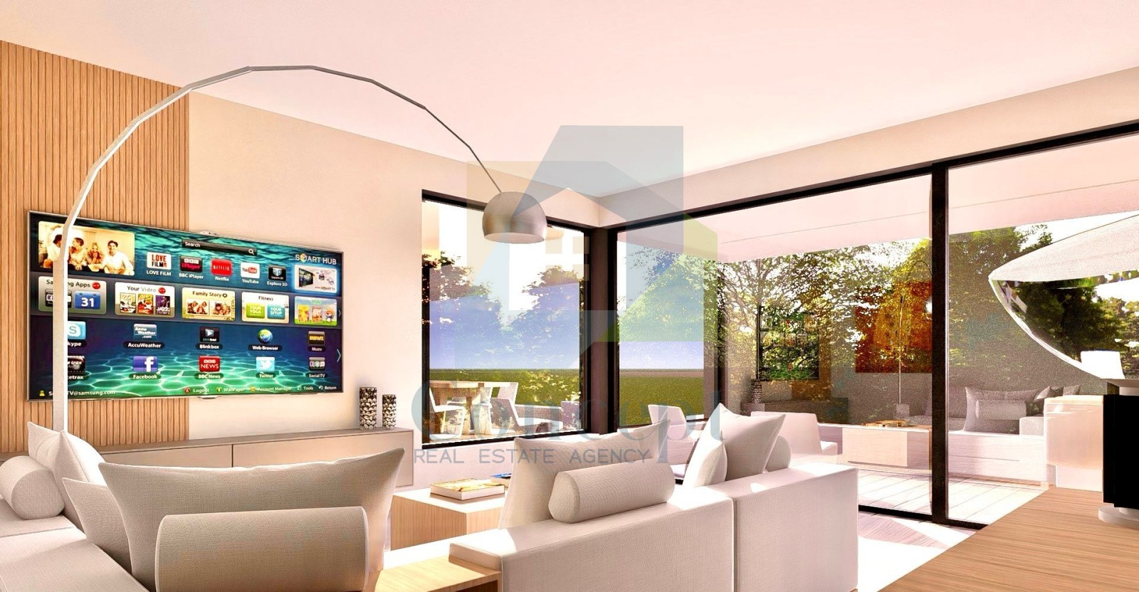 Die Wohnung besteht aus einem geräumigen Wohnbereich, einer offenen Küche und einem Essbereich mit Zugang zu einer überdachten Terrasse von 36 m². Der Grundriss wurde so gestaltet, dass er einen angenehmen Aufenthalt mit viel natürlichem Licht ermöglicht.