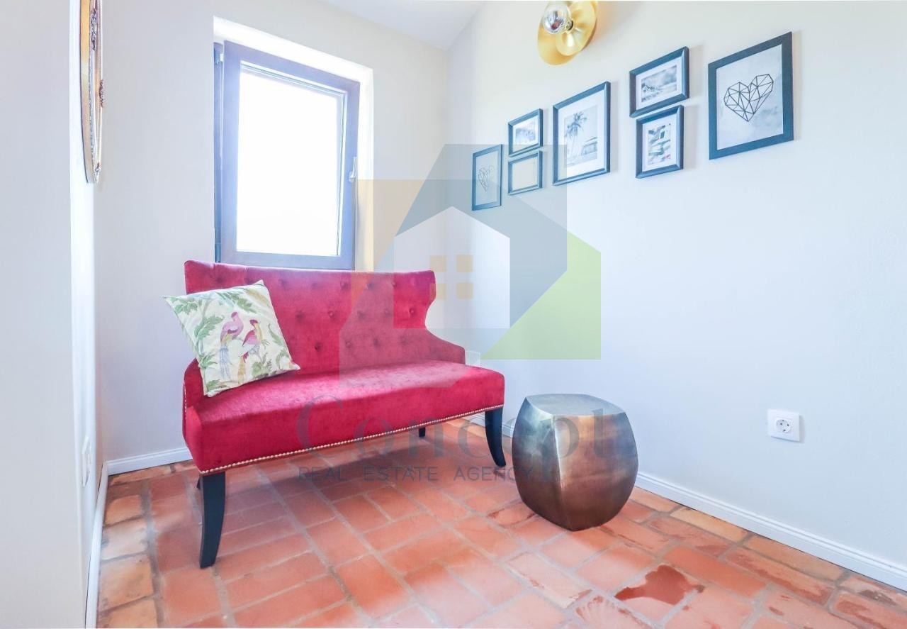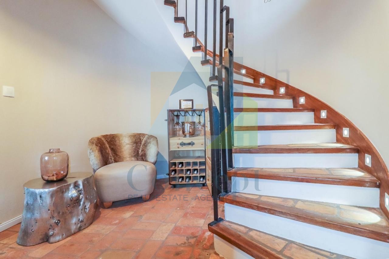 Im ersten Stock, nachdem Sie die wunderschöne Treppe hinaufgestiegen sind, erwartet Sie ein geräumiger Flur, ein Badezimmer und drei komfortable Schlafzimmer, von denen eines über ein eigenes Badezimmer verfügt. Diese Zimmer bieten Privatsphäre und Komfort, und eines von ihnen hat einen Zugang zum Balkon mit Blick auf die Natur.
