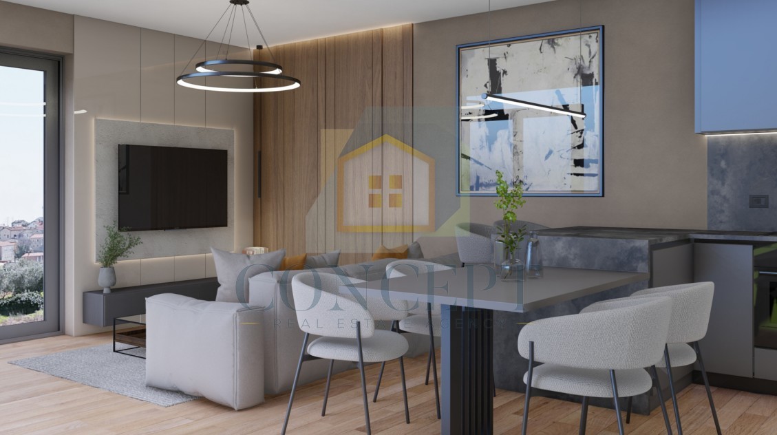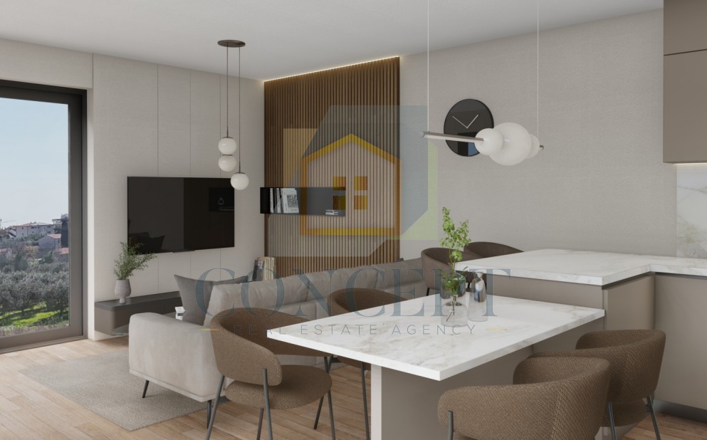 In the vicinity of Poreč, just 6 km from the city and 3 km from the sea, we are selling apartments in a modern building that will feature a total of 24 apartments currently under construction. The location is excellent for a comfortable life or vacation in a peaceful environment, and the building has been designed according to contemporary construction and comfort standards.