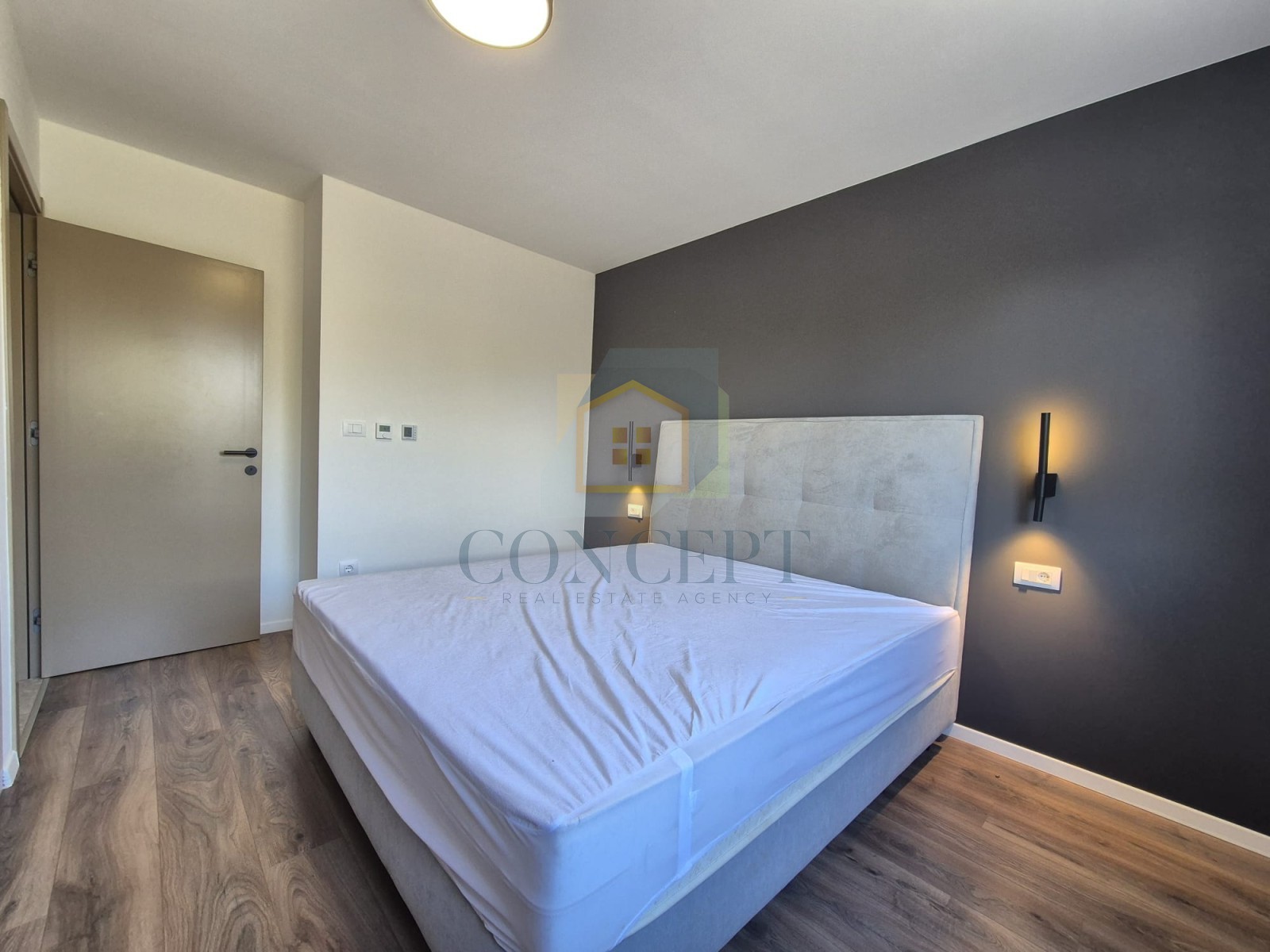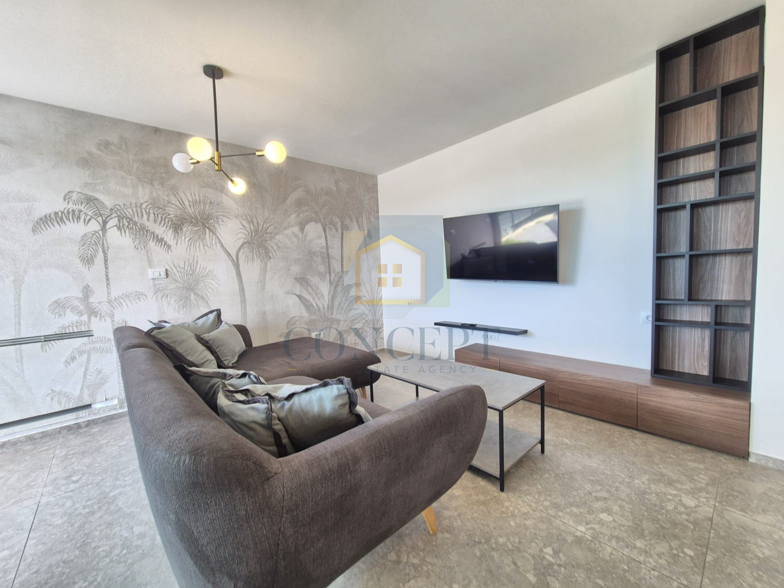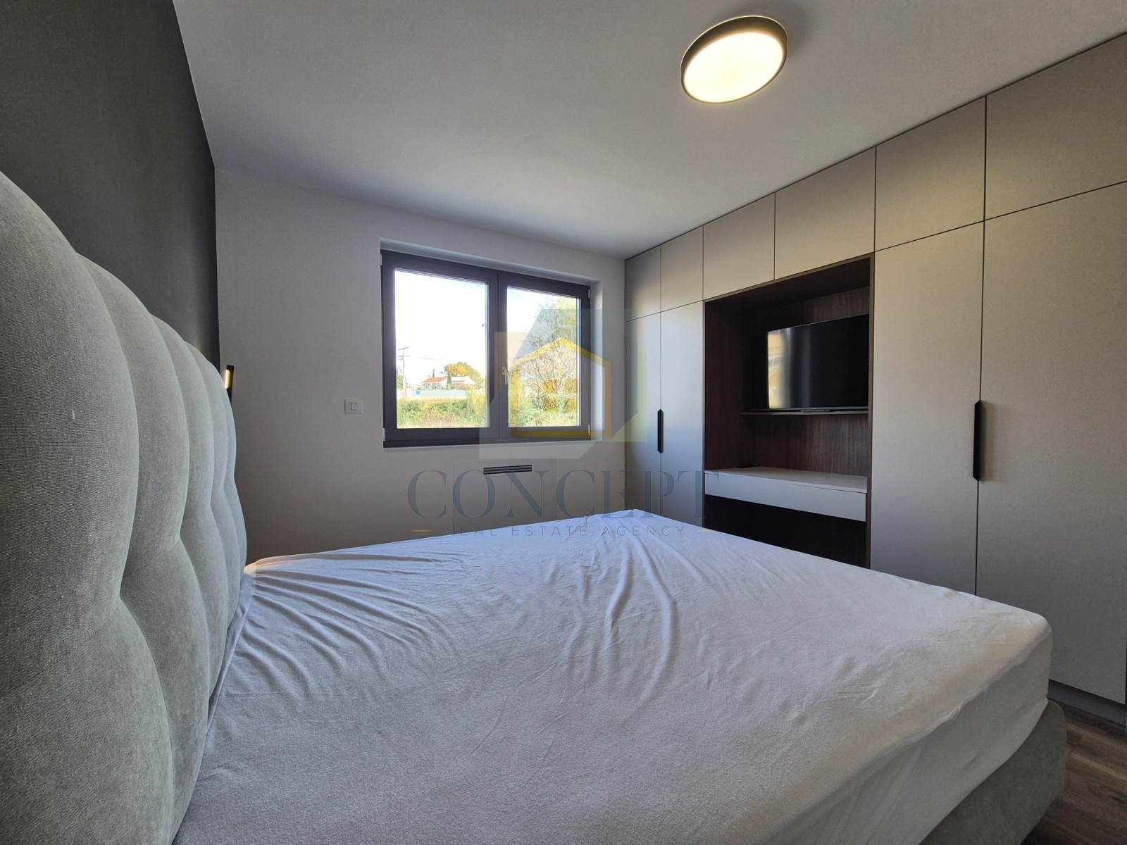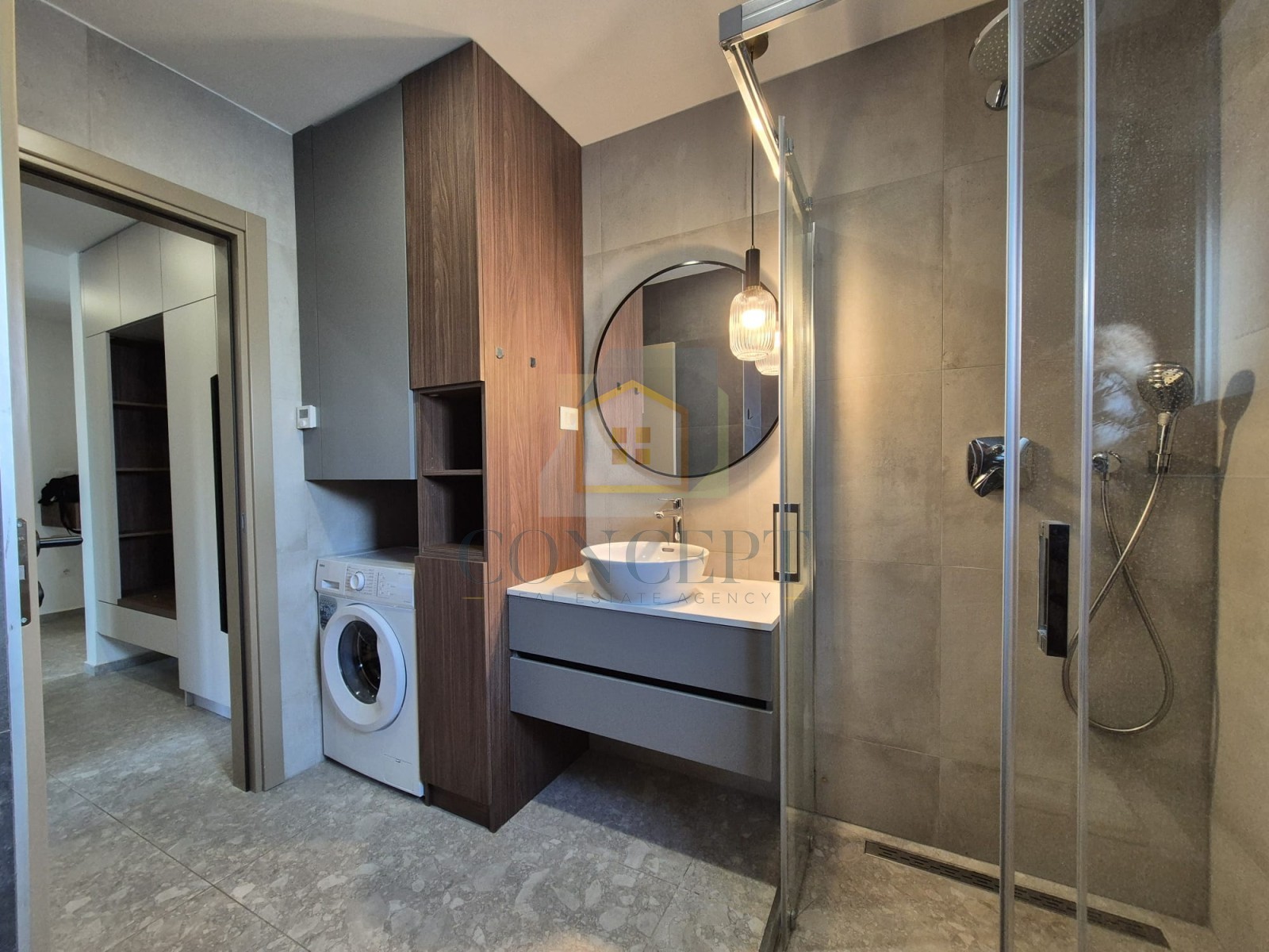 The apartment is equipped with underfloor heating, a heat pump, and air conditioning units. It is sold furnished. High-quality materials were used in the construction, including triple-layer glass joinery, wooden interior and aluminum exterior joinery, stone cladding, and quality sanitary ware.