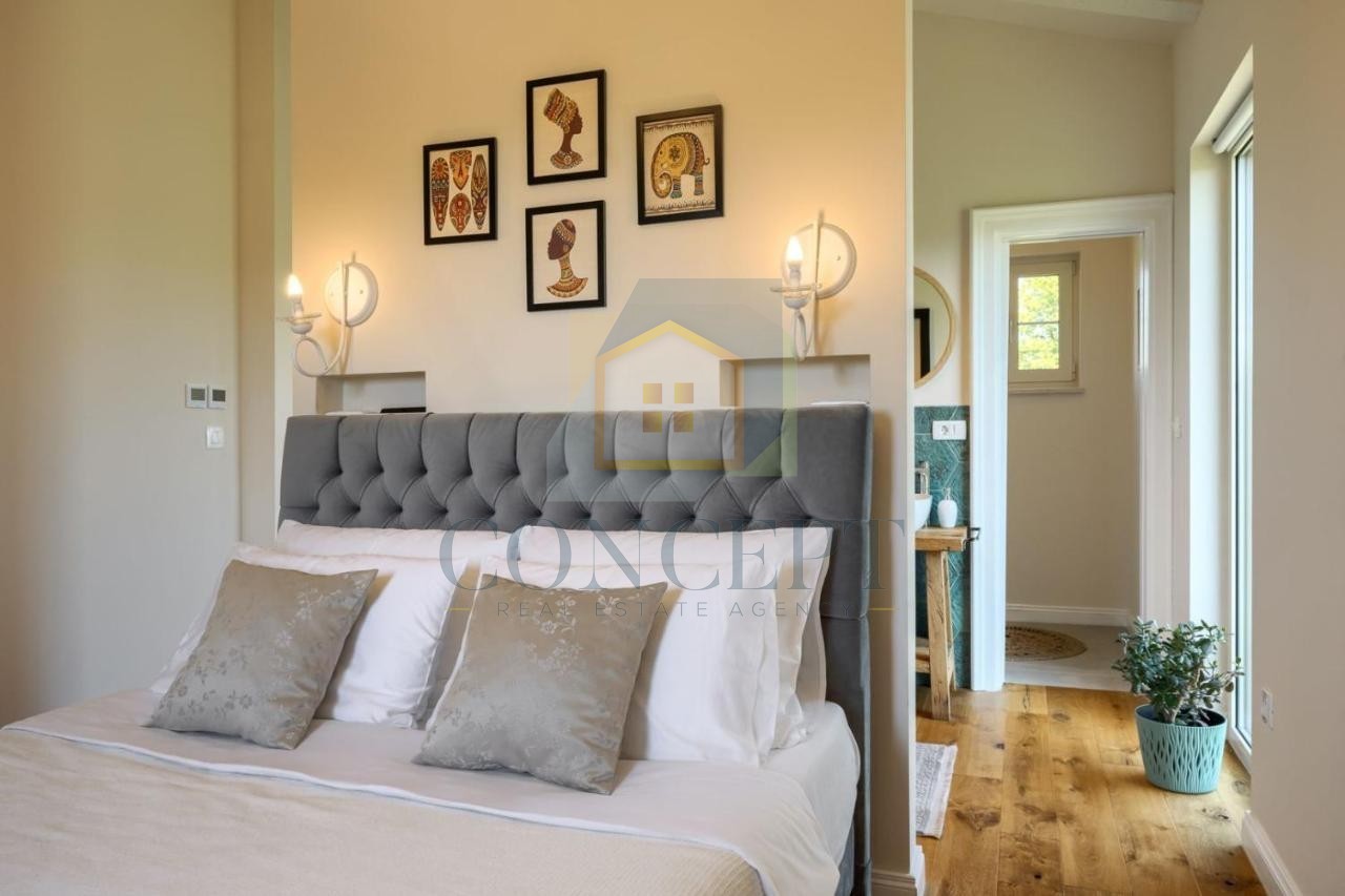 Ovu prekrasnu vilu, moderne gradnje ali Istarskog stila čine 170 m2 koji se protežu na dvije etaže.
