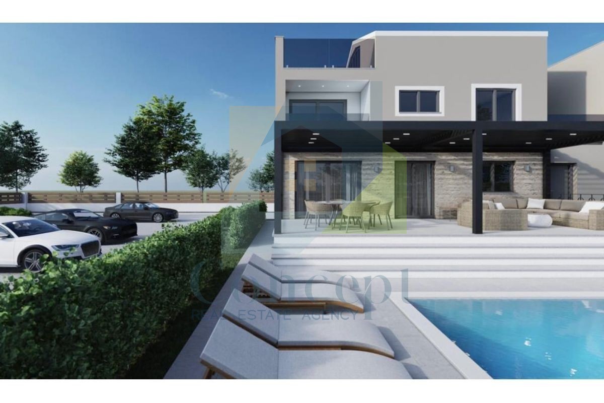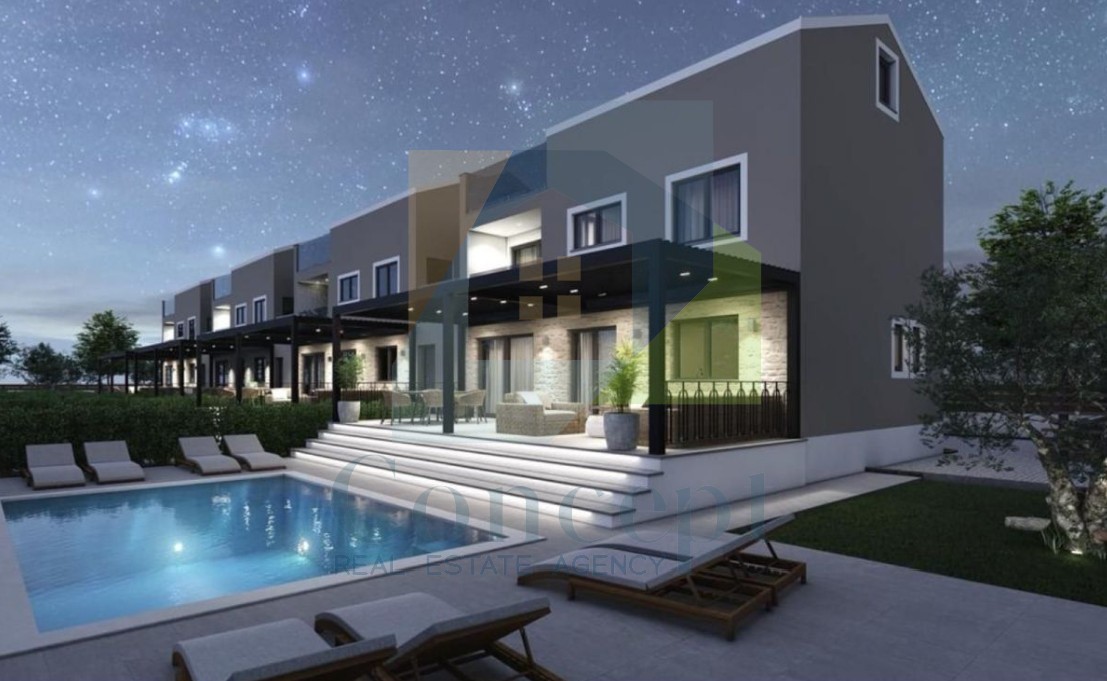 Okućnica površine oko 500 m² bit će pažljivo uređena i oplemenjena zelenilom. U dvorištu je predviđena izgradnja bazena, čime se dodatno podiže kvaliteta boravka na otvorenom.