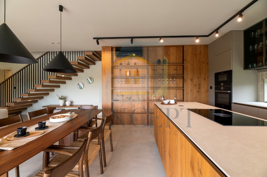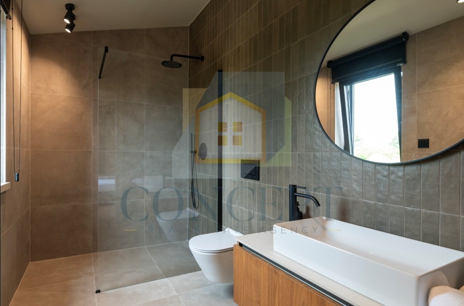 Prodaje se moderna vila u okolici Poreča, ukupne površine 220 m², smještena na zemljištu veličine 1.002 m². Vila je nedavno dovršena te građena prema visokim standardima, a raspoređena je na dvije etaže.