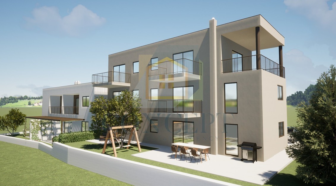 Prodaje se stan na prvom katu novogradnje u manjoj stambenoj zgradi s ukupno osam stanova, smještenoj u uređenom naselju s kompletnom infrastrukturom. Lokacija je pogodna za svakodnevni život i turistički najam – svi potrebni sadržaji poput trgovine, škole, vrtića i restorana nalaze se u pješačkoj zoni, a more je udaljeno svega 3 km.