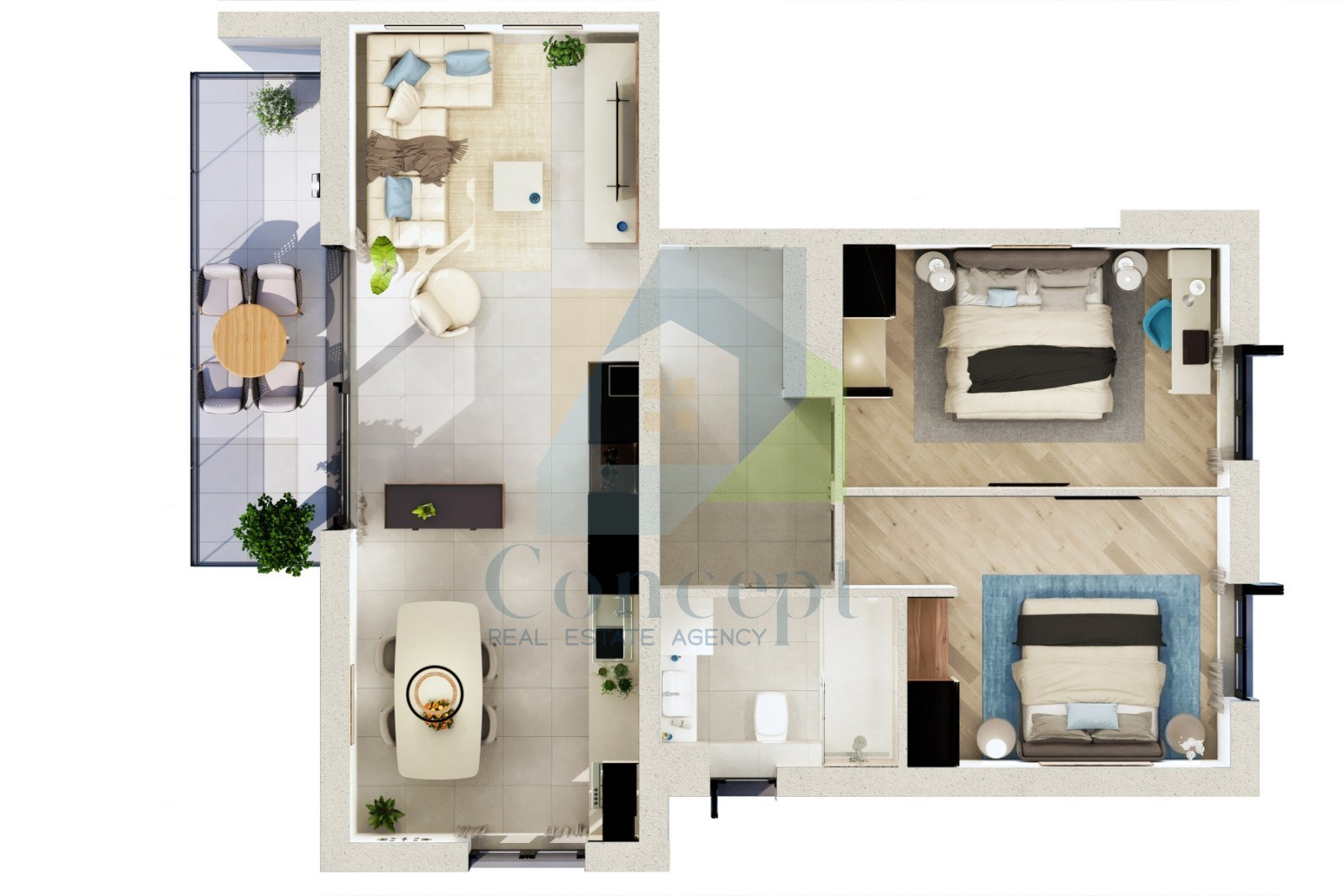 Na prodaju je stan na drugom katu, ukupne površine 67,71 m². Stan se sastoji od dnevnog boravka, kuhinje, blagovaonice, dvije prostrane spavaće sobe i velike kupaonice. Također, stan ima natkriveni balkon površine 8,04 m², savršen za uživanje na otvorenom.