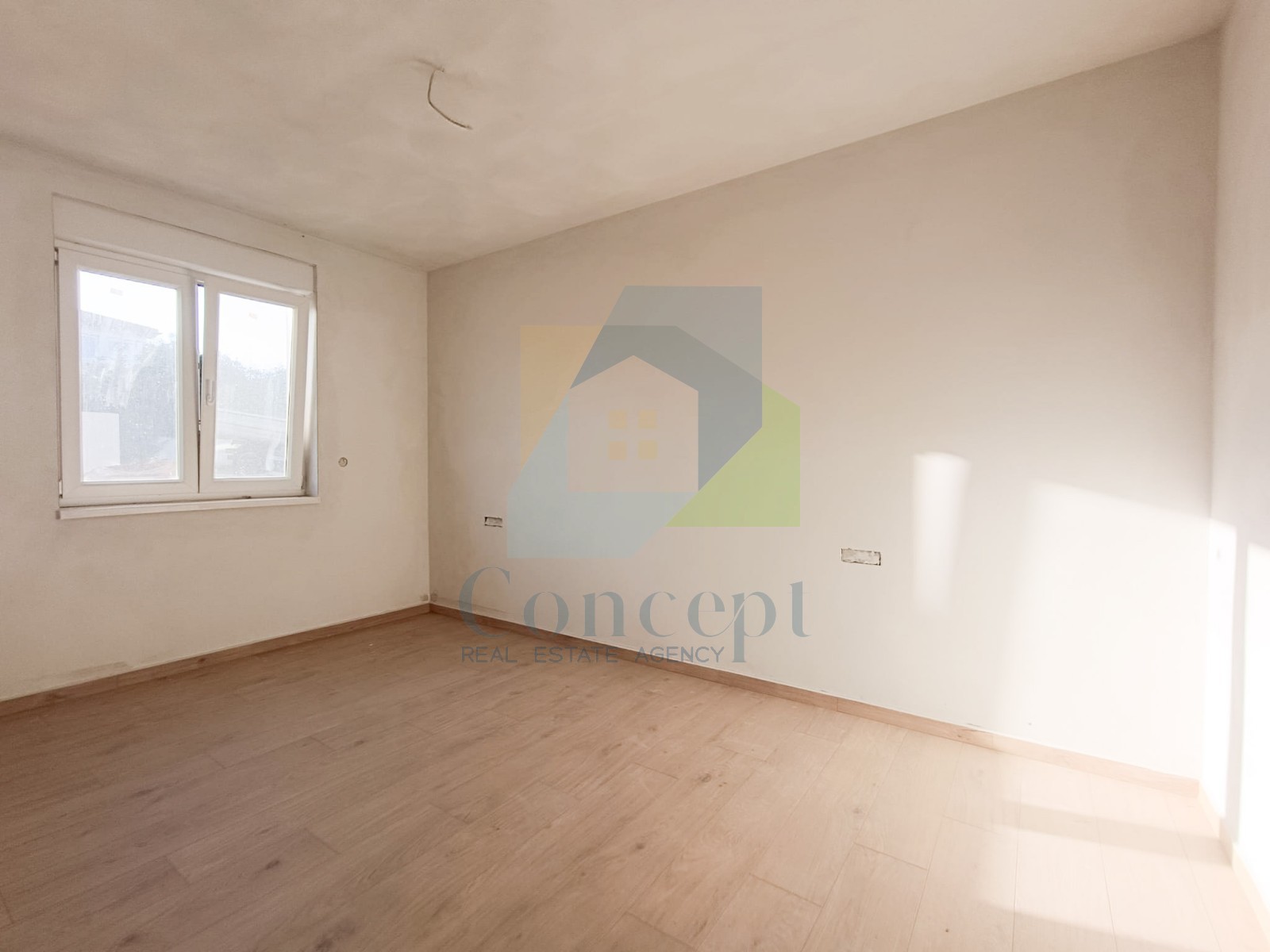 Questo appartamento al primo piano ha una superficie totale di 52,85 m², e con il loggiato coperto di 4,28 m², lo spazio abitativo è ulteriormente ampliato. L'appartamento è composto da due camere da letto, un bagno e un ampio soggiorno con cucina e zona pranzo in open space, creando un'atmosfera accogliente e luminosa. Dal soggiorno si accede al loggiato coperto con una vista mozzafiato sul mare, perfetto per godere dell'aria aperta.
