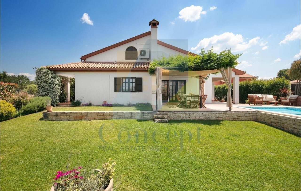 In una posizione tranquilla nella periferia di Poreč, a soli 3 km dal centro, si trova una spaziosa villa con piscina, con una superficie abitabile totale di 330 m². È stata costruita su un terreno di 776 m², al limite della zona edificabile, offrendo pace e privacy, pur essendo vicina a tutti i servizi necessari.