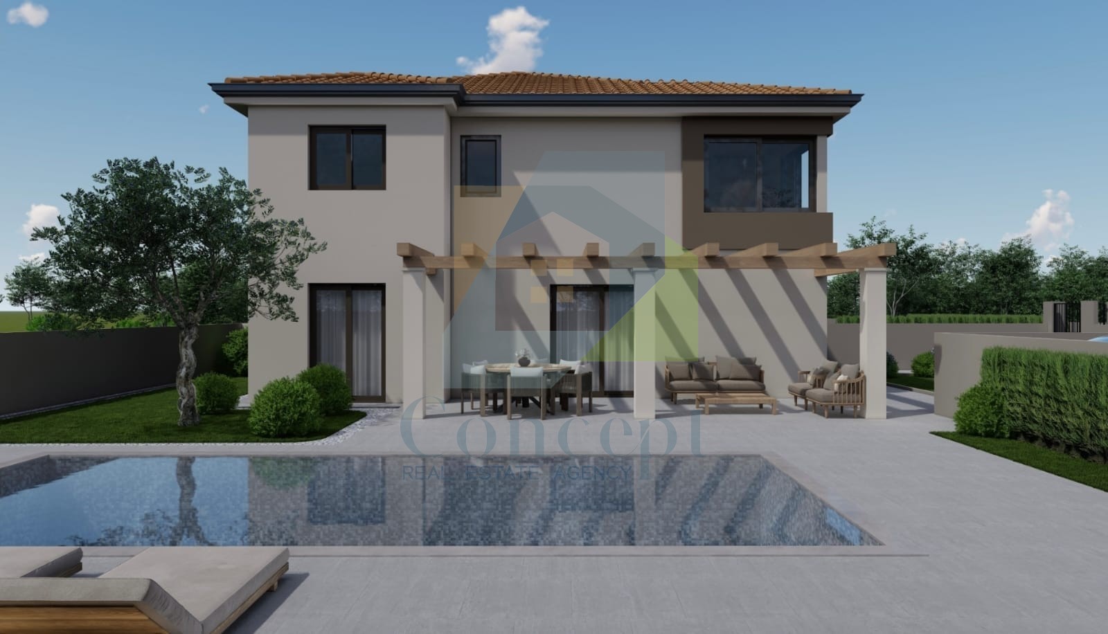 In vendita ci sono due moderne case bifamiliari situate in una posizione estremamente tranquilla, a 12 km dal mare e da Poreč. Ogni casa si estende su due piani con una superficie netta totale di 137,5 m² e un terreno di circa 420 m².