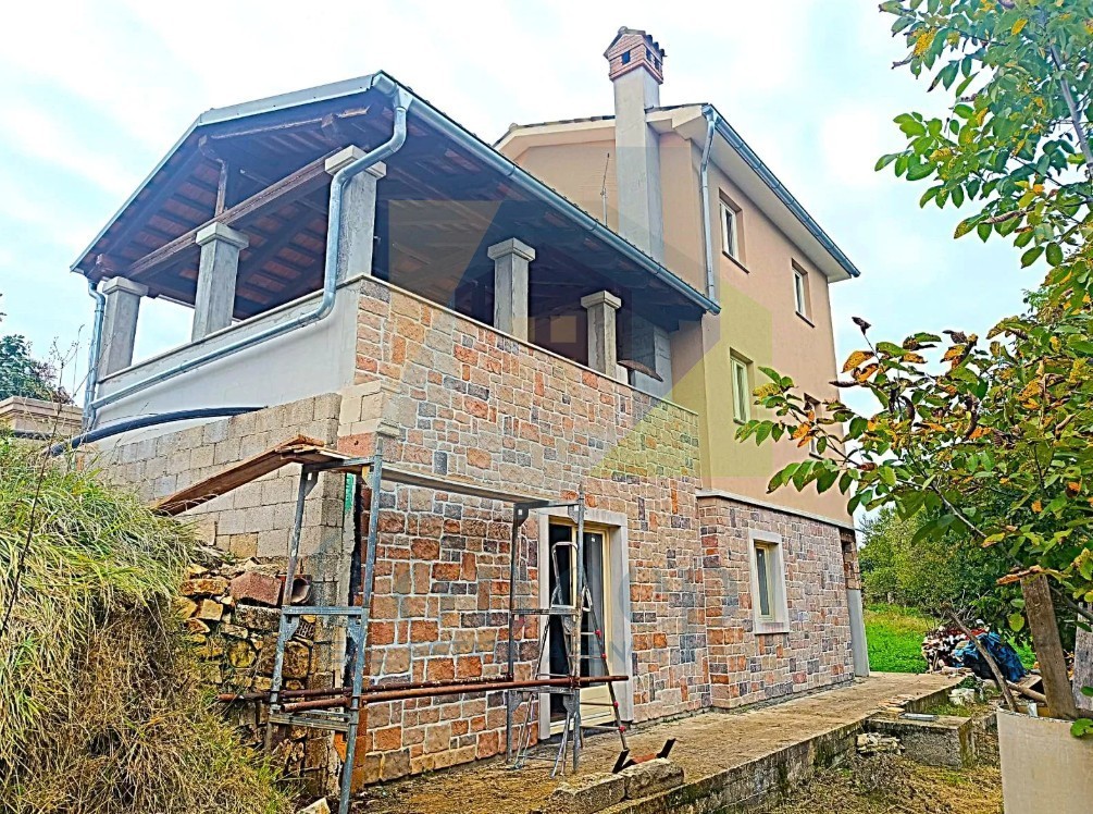 Al piano terra si trova un ingresso che conduce a un ampio soggiorno, cucina e sala da pranzo, insieme a un bagno di servizio separato. Dalla cucina si accede a una terrazza coperta con cucina estiva, ideale per riunioni familiari e momenti di relax. La scala interna conduce al primo piano, dove si trovano due camere da letto, un bagno e una terrazza con una vista splendida sul paesaggio circostante. Il seminterrato comprende ulteriori 40 m², inclusi cucina, sala da pranzo, soggiorno e bagno, offrendo la possibilità di uno spazio abitativo separato.