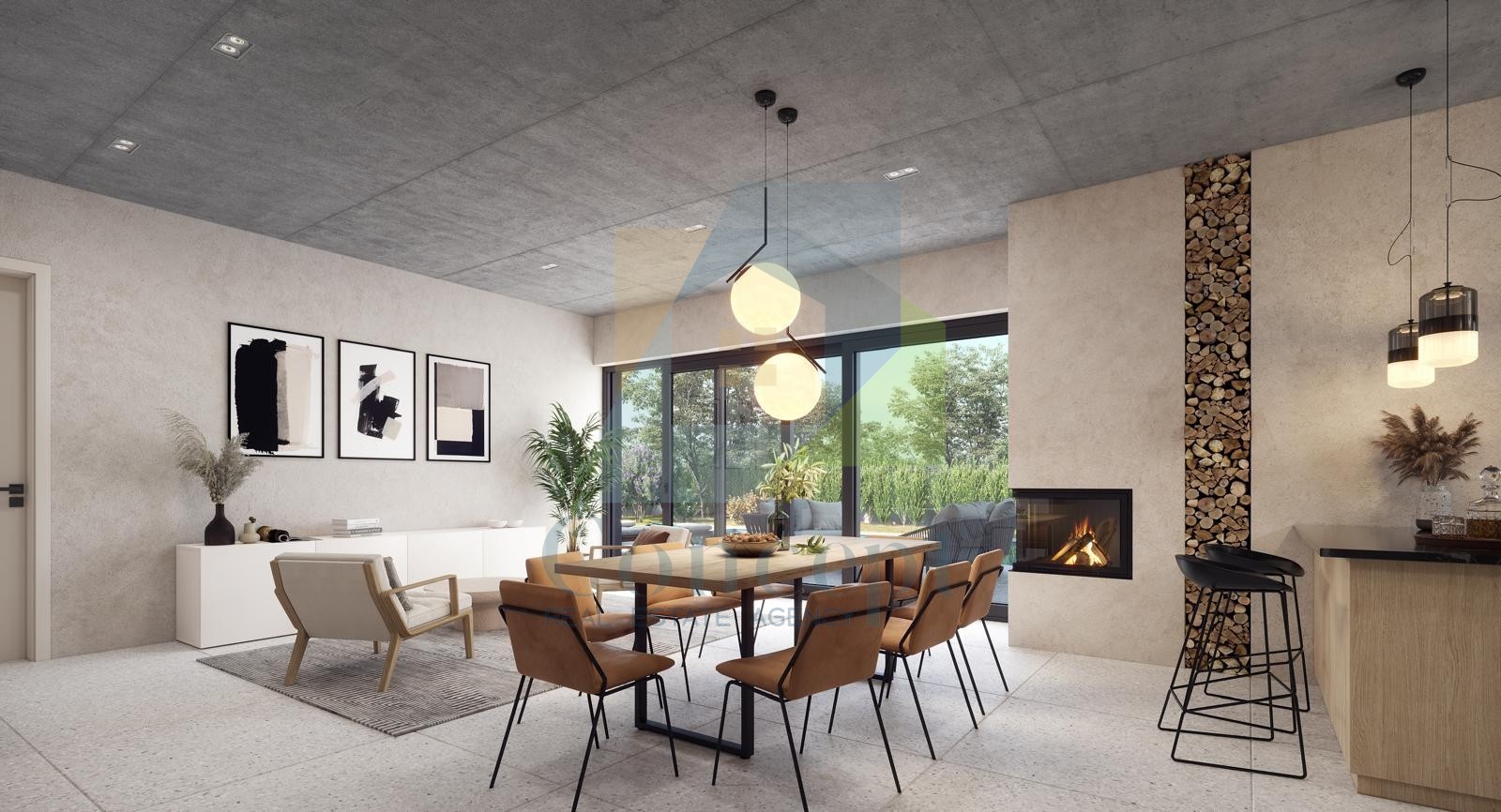 Questa moderna proprietà si estende su circa 200 m² distribuiti su due piani. Al piano terra si troverà un ampio soggiorno con camino a legna, collegato a cucina e zona pranzo in open space, ripostiglio, bagno per gli ospiti e centrale termica. Dal soggiorno, attraverso una grande parete vetrata, si accede a una terrazza che ospiterà una cucina estiva e una piscina riscaldata di 56 m², ideale per godere delle giornate calde.