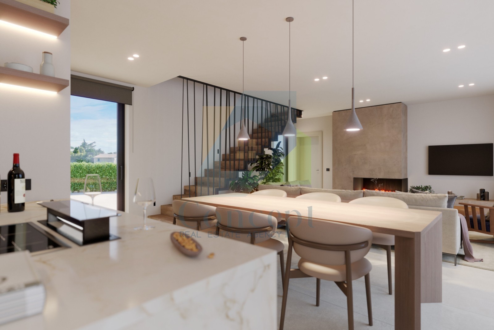 Al piano terra si troverà un ingresso, un ampio soggiorno con cucina e sala da pranzo in open space, un bagno e una camera da letto con bagno privato. Dal soggiorno si uscirà su una terrazza coperta e un giardino che avrà una piscina, un ripostiglio e una cucina estiva.