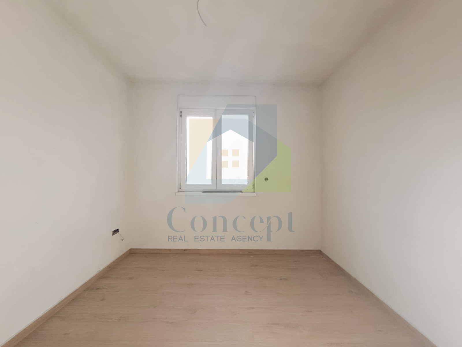 Ta stan na prvem nadstropju ima skupno površino 52,85 m², dodatno pa ga širi pokrita loggia v velikosti 4,28 m². Stanovanje sestavljajo dve spalnici, kopalnica ter prostorna dnevna soba s kuhinjo in jedilnico v odprtem konceptu, kar ustvarja prijetno in svetlo vzdušje. Iz dnevne sobe je izhod na pokrito loggio s čudovitim pogledom na morje, ki je idealna za uživanje na prostem.