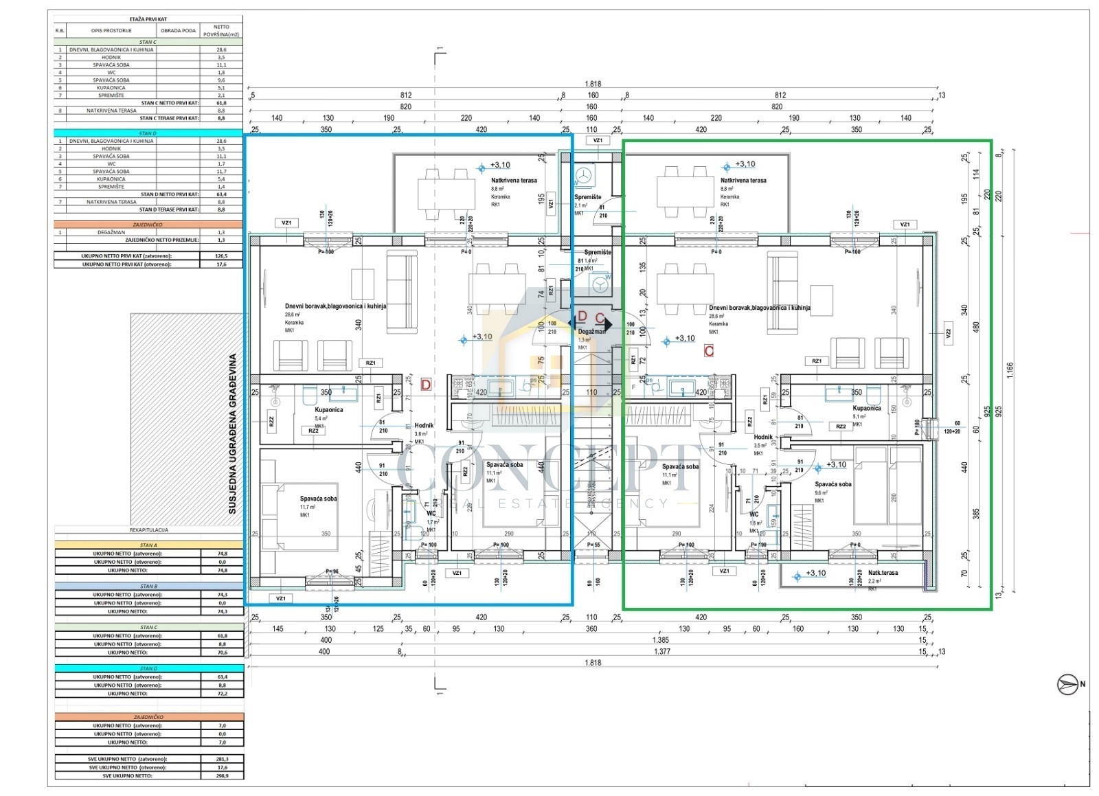 Na prodaji je stan na prvem nadstropju novogradnje v Taru, oddaljen le 3 km od urejenih plaž in 500 m od restavracij, supermarketov, šole, lekarne in drugih vsebin.