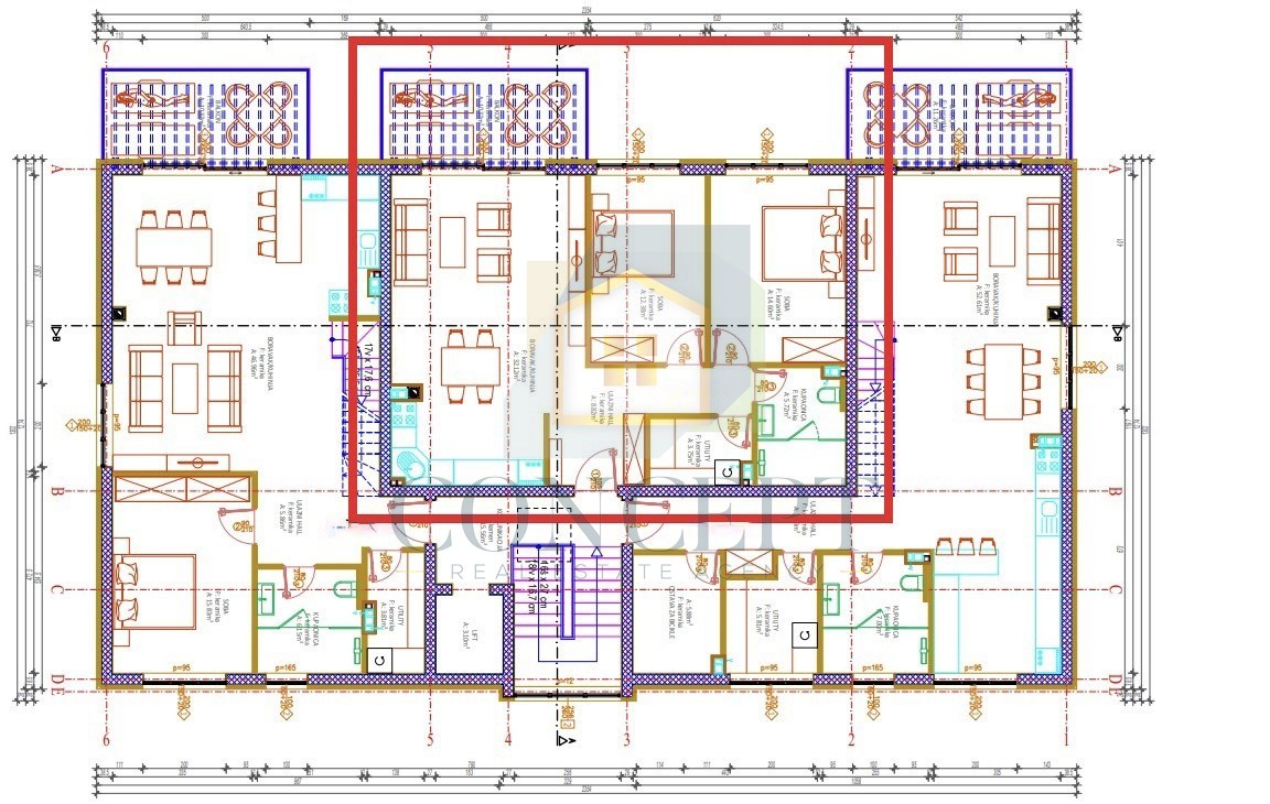 Stanovanje ima skupno površino 79,98 m² in obsega vhodni hodnik, utility prostorijo, moderno kopalnico, dve spalnici ter prostoren dnevni prostor, povezan s kuhinjo in jedilnico. Iz dnevnega dela se izide na praktično teraso v velikosti 10,37 m², s katere se ponuja čudovit pogled na morje.